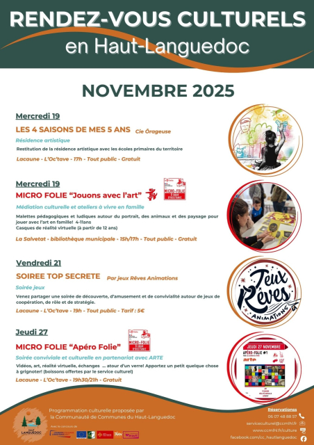 La communauté de commune vous propose les rendez-vous culturels suivant pour Novembre 2025.