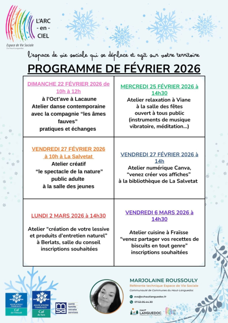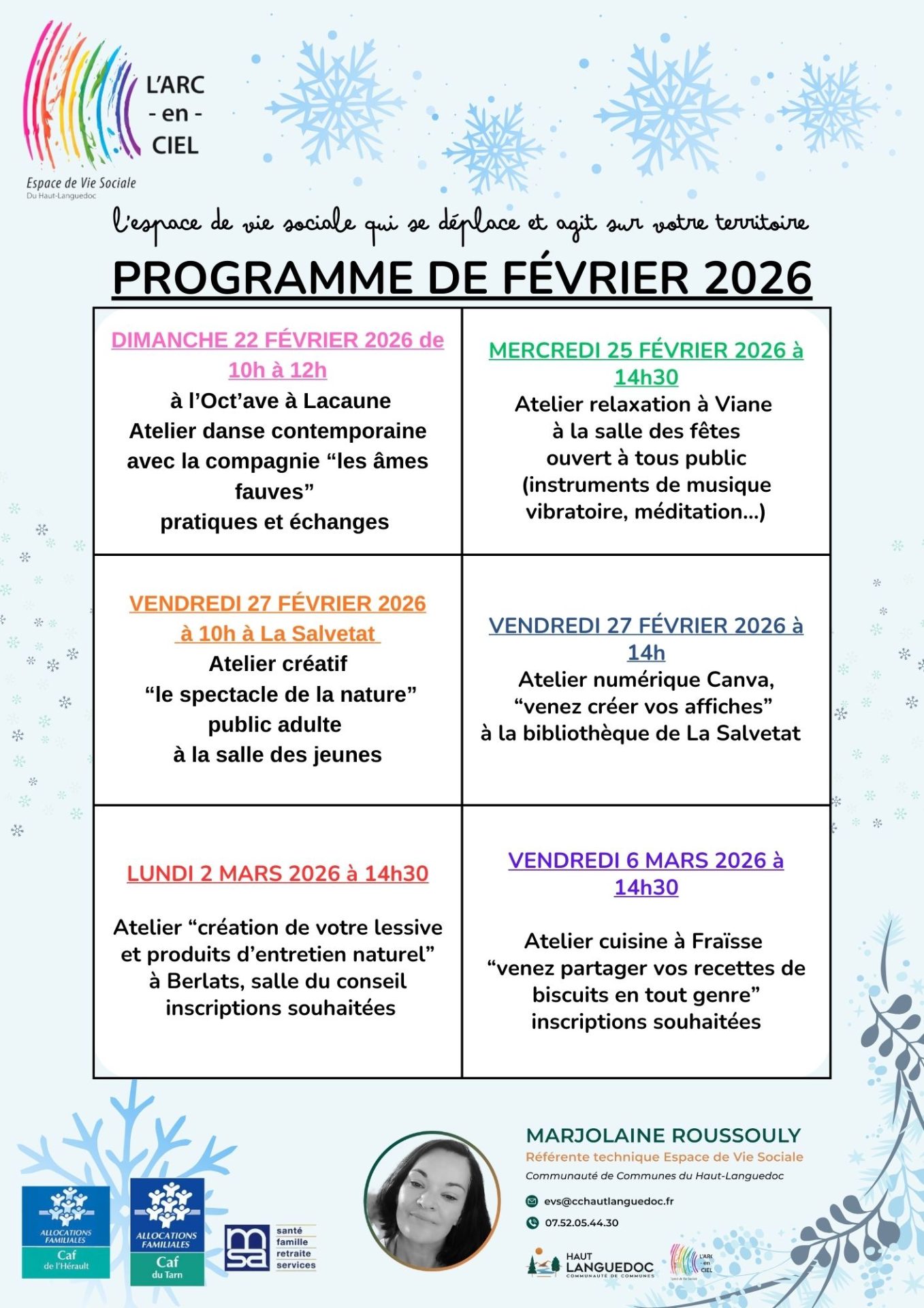 L’espace de vie L’ARC-EN-CIEL est heureux de vous présenter le programme du mois de février.
